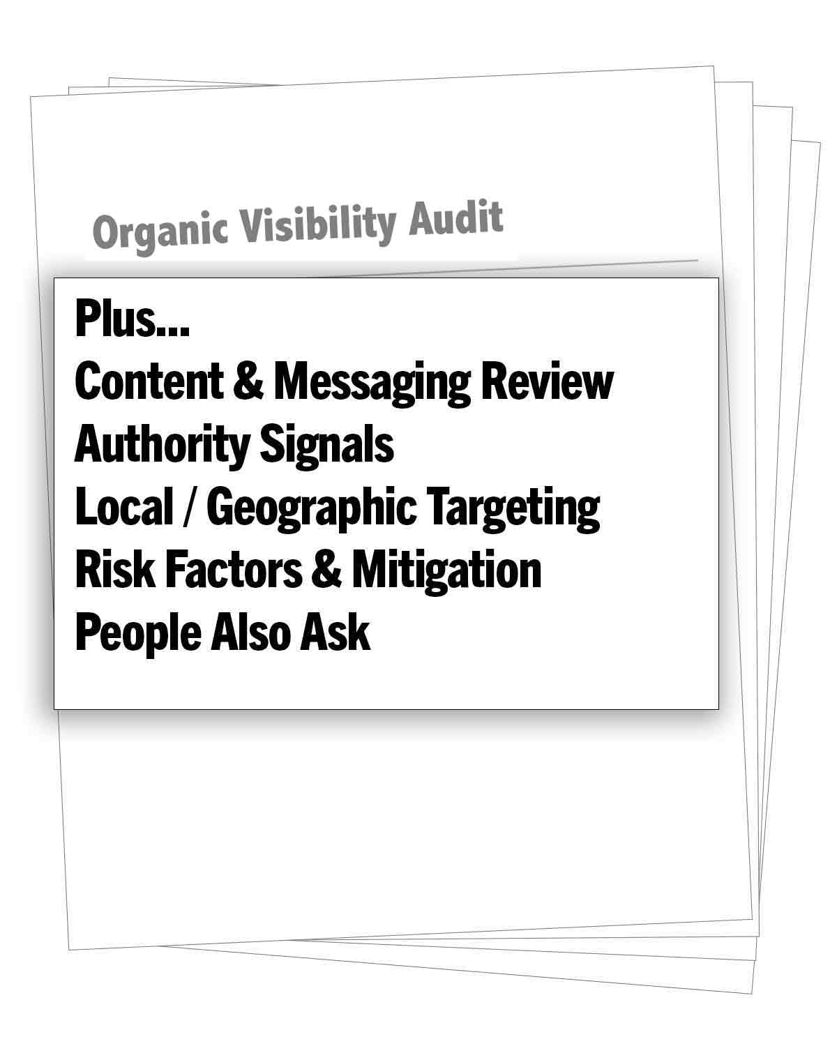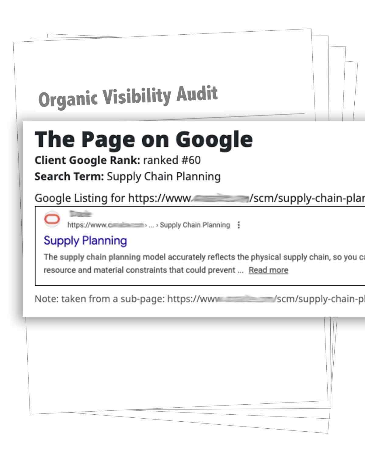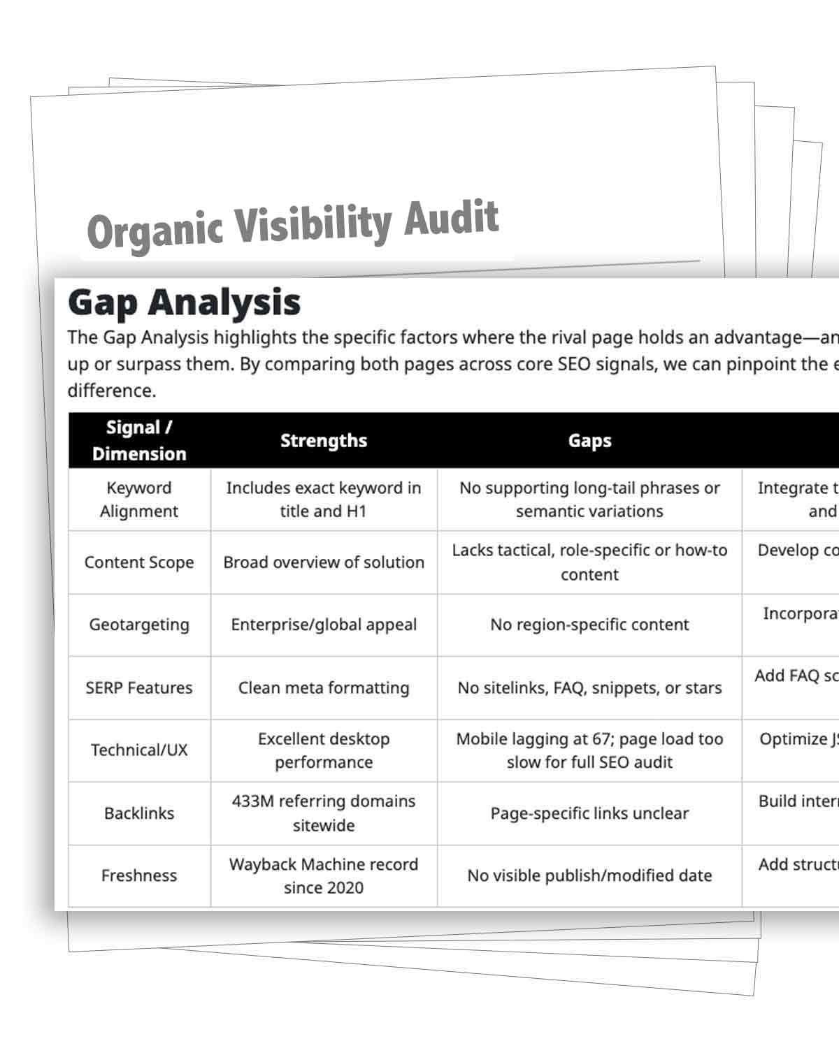 Organic Visibility Audits isolate the pages that do the heavy lifting, then explain exactly what’s preventing them from earning the visibility they should already have.